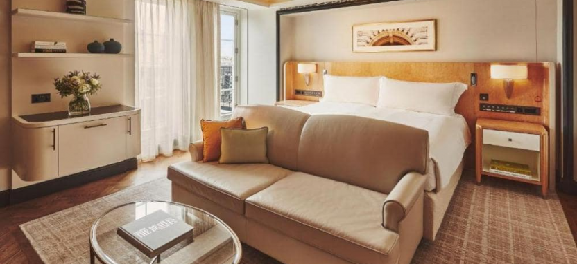 Deluxe Junior Suite (65 кв. м) – элегантная гостиная, большая гардеробная, спальня, ванная комната. Вид на внутренний двор.