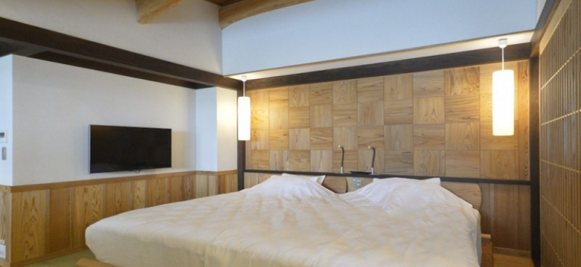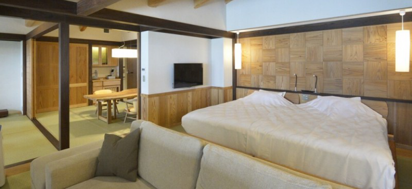 Fuchisou (53 кв. м) – номер с видом на долину, расположен на третьем этаже. Вместимость до 4 человек. Есть закрытый обеденный зал. В спальне 2 кровати (шириной по 110 см). В номере вся мебель из натурального дерева.