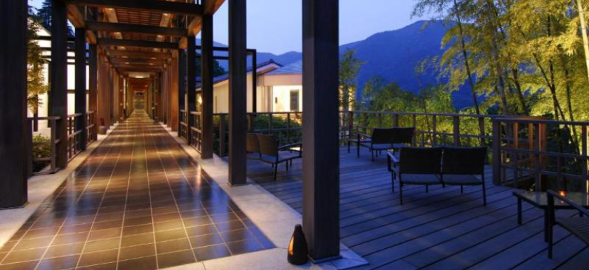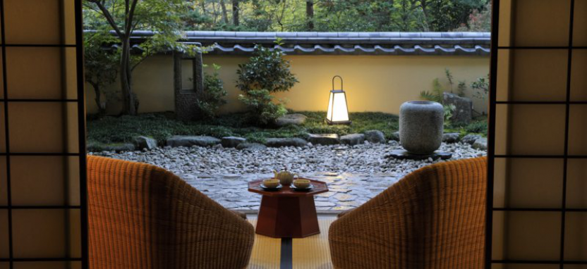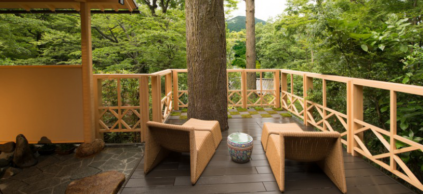 Annex Suite "Senshin" - вмещает до 2 человек. Гостиная 20 кв. м, зона отдыха с креслами, деревянная терраса. Ванна под открытым небом каменная в саду, душевая кабина. Кровать - футоны на татами. Ужин и завтрак подаются в отдельной комнате ресторана "Кайсеки Кадан".