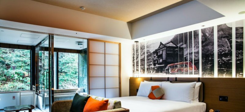 Deluxe King Riverside (38 кв. м) - номер с видом на бурлящую реку Хая. Дизайн номера сочетают в себе элементы современного и традиционного японского стиля. Спальня с одной двуспальной кроватью. Ванная комната: отдельный открытый onsen (перекаченная вода из горячего источника) и отдельная душевая кабина. В распоряжении есть выдвижная кровать.
