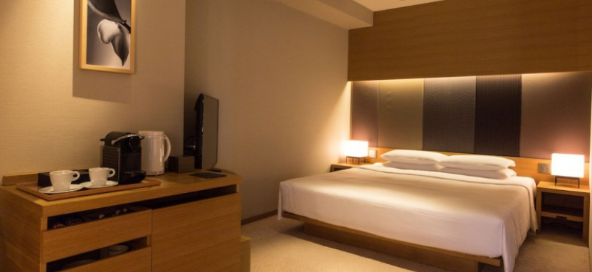 Kyoto Suite King / Twin (88 кв. м) - сьют расположен на 5 этаже. С большого балкона открывается вид на знаменитый Киотский национальный музей. Просторный двухкомнатный сьют отличается стилистическим сочетанием серых и красных тонов. Большая гостиная оборудована телевизором с плоским экраном, рабочим столом. В ванной комнате с окном установлена просторная деревянная ванна (Hiba) с верхним душем и двойные гранитные раковины.