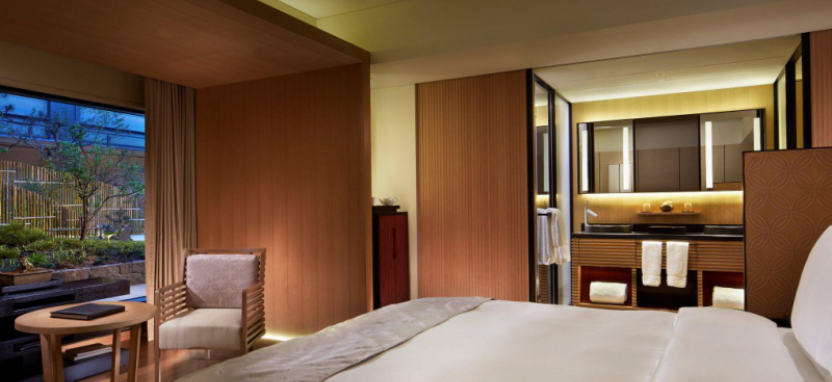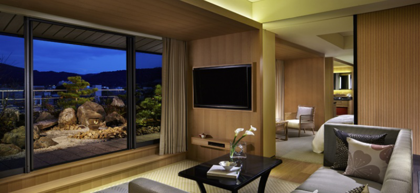Garden Terrace Suite (70 кв. м) - расположены на 5 этаже. Вместимость до 3 человек. Личная терраса с видом на сад и на горы Хигасияма. Три панорамных окна: в спальне, гостиной и ванной.