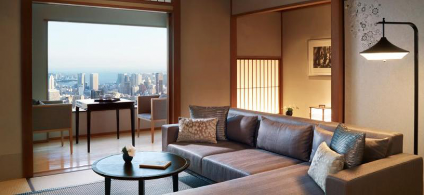 Modern Japanese Suite (100 кв. м) - сьюты расположены на 47 и 48 этажах и вмещают до трех взрослых. Вид на небоскребы, Токийскую Башню и Токийский залив. Уникальный японский эстетический дизайн. Роскошная кровать футон в японском стиле. Две комнаты с традиционными татами и дверью Седзи. Эксклюзивные преимущества и услуги клубного лаунжа.